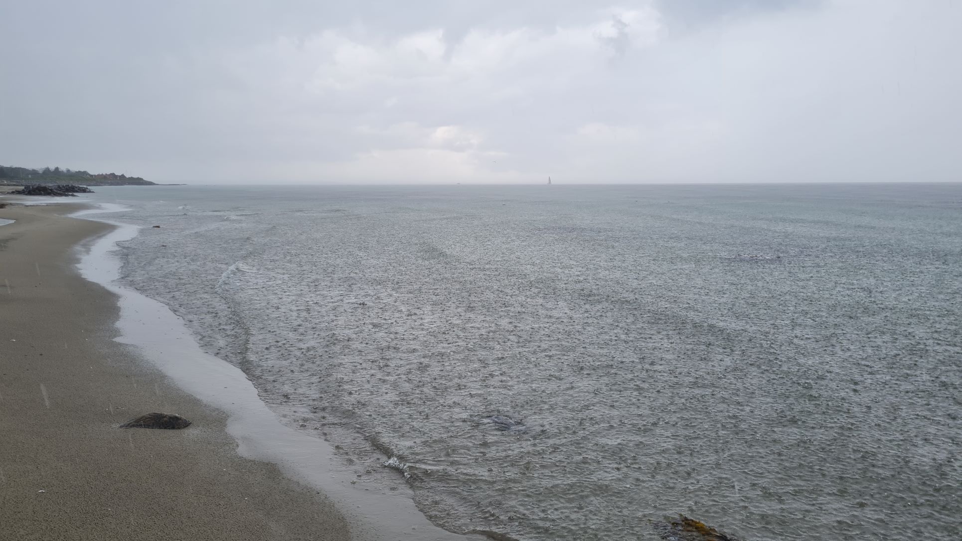 | Regnen slog ned mod vandet og sigtbarheden blev voldsomt begrænset.