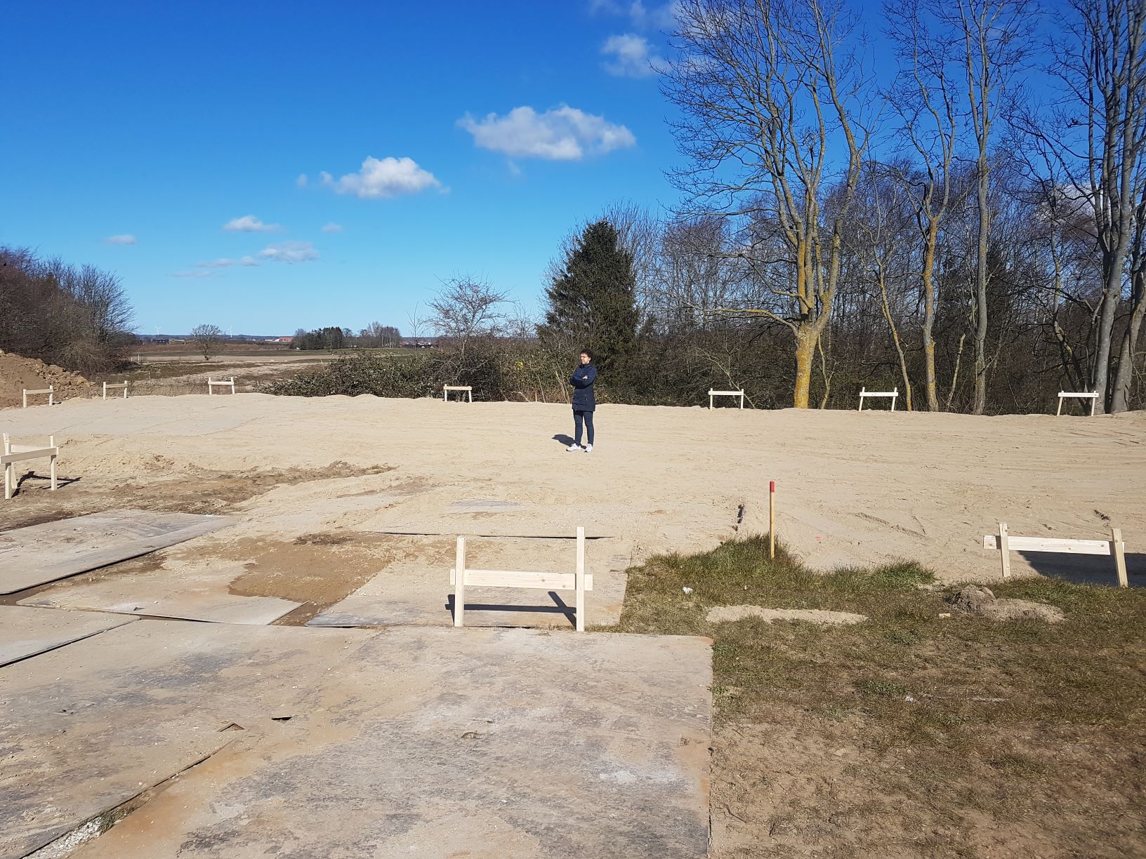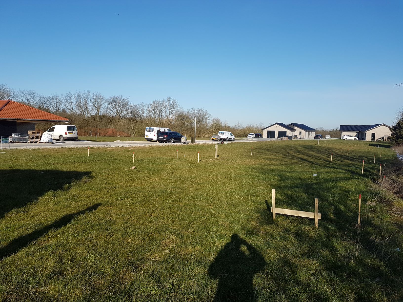 Mandag den 23. marts havde vi opstartsmøde med vores byggeleder Karsten Nielsen på grunden. Til opstartsmødet har en landmåler sat huset af på grunden, og det er sidste chance for at "råbe stop", hvis noget ser forkert ud med hensyn til placeringen.