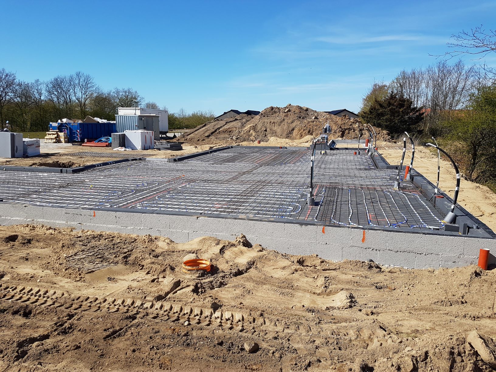 Da vores grund ligger højt i forhold til næste udstykning mod Nord, skulle der graves en masse (14 lastbiler!) jord væk og fyldes op med grus til en såkaldt sandpude, som huset skulle funderes på.