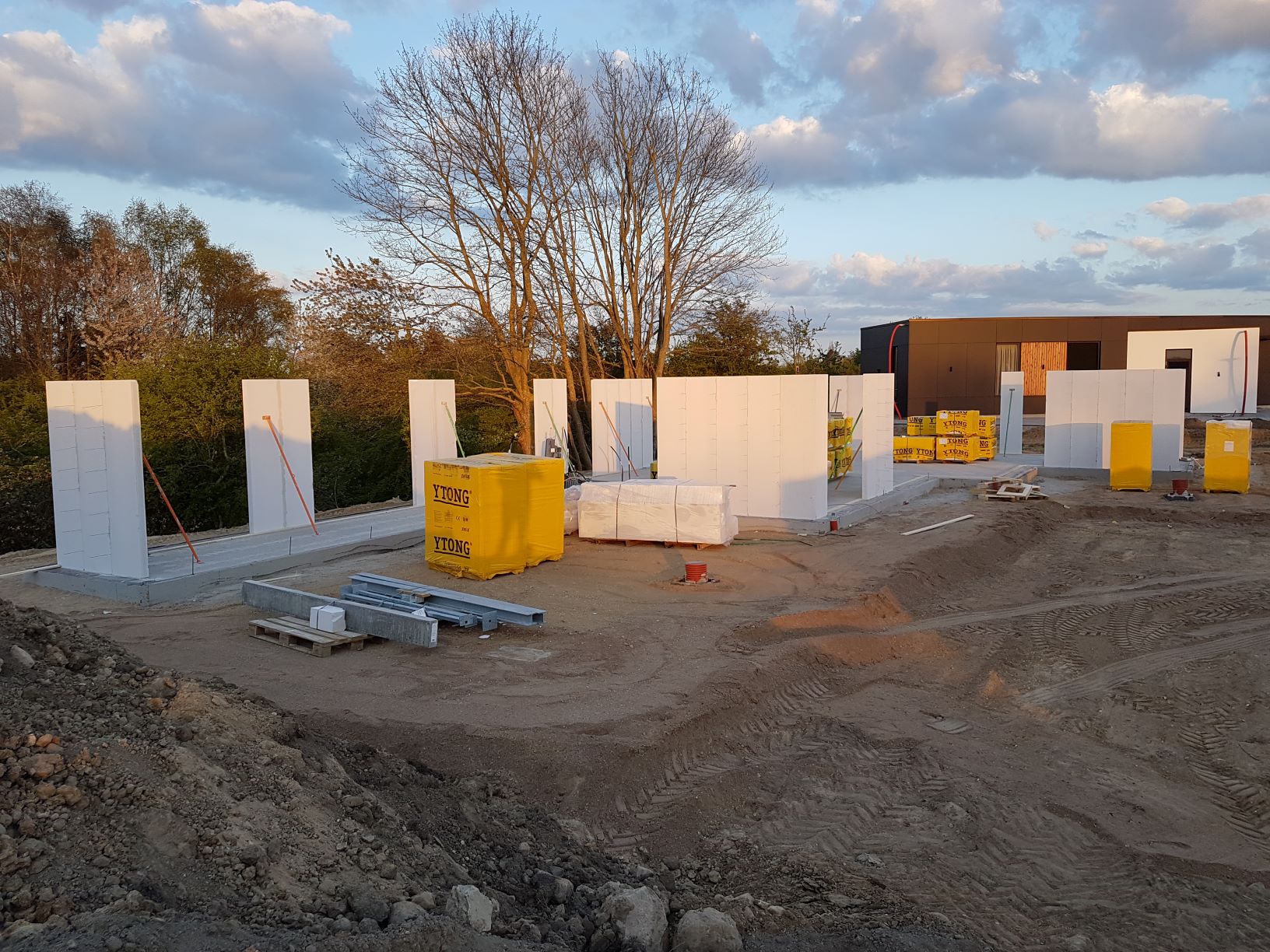 Blot 3 dage efter at gulvet blev støbt, begyndte de at sætte væggene op.