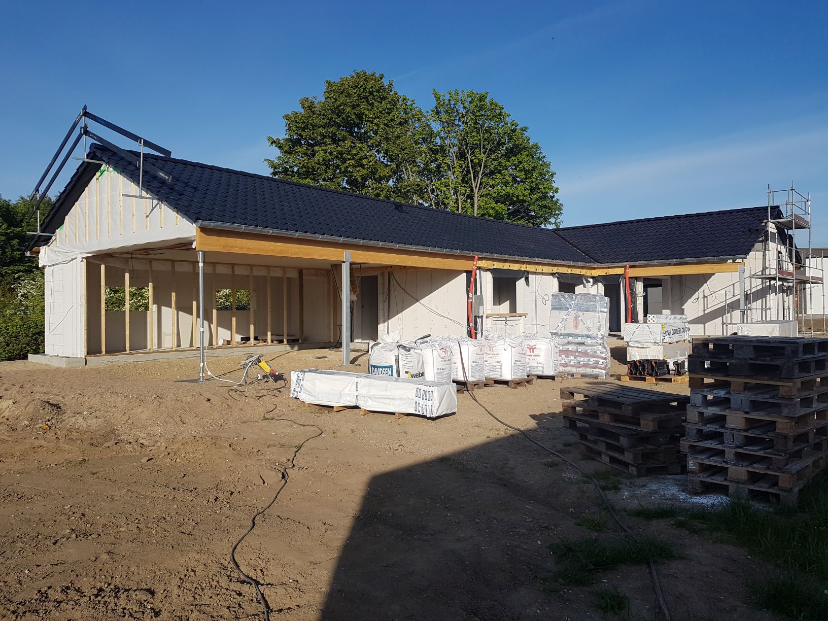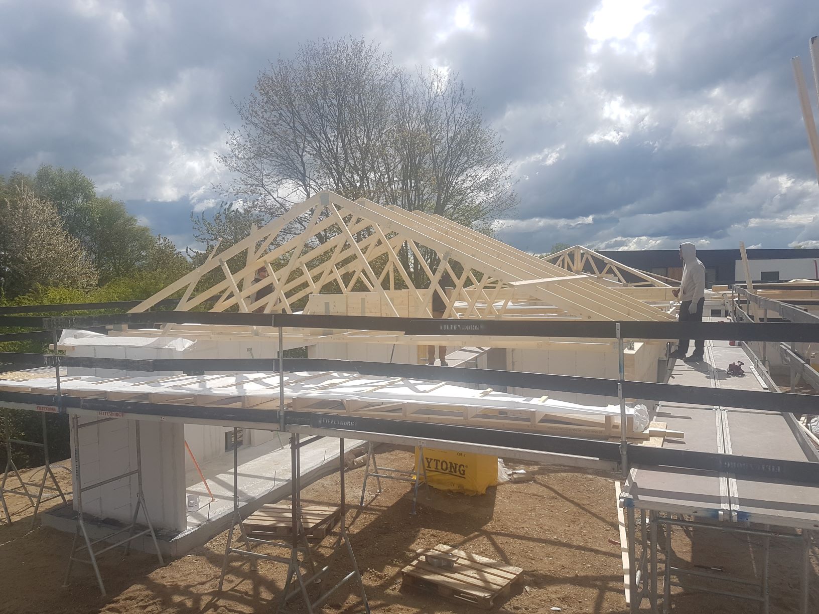 Tirsdag den 5. maj var det blevet tømrernes tur til at overtage byggepladsen, og så begyndte de at sætte spær op.