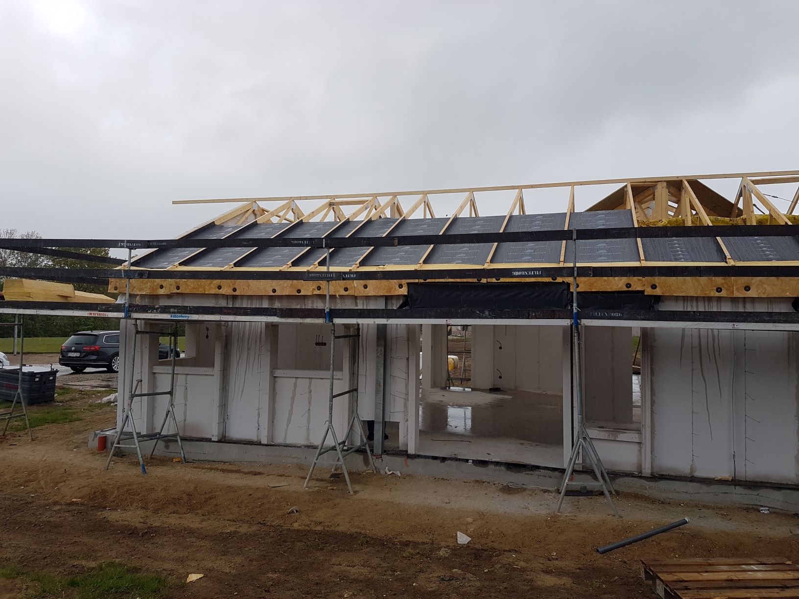 Vi var utroligt heldige med vejret i hele byggefasen. I dag var vist en af de meget få dage, hvor det regnede.