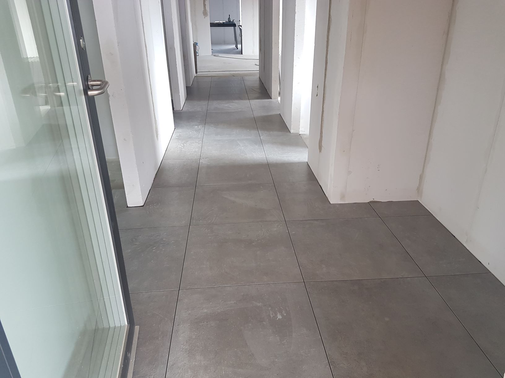 Så er flisemureren gået i gang med at lægge fliser, her i entréen.