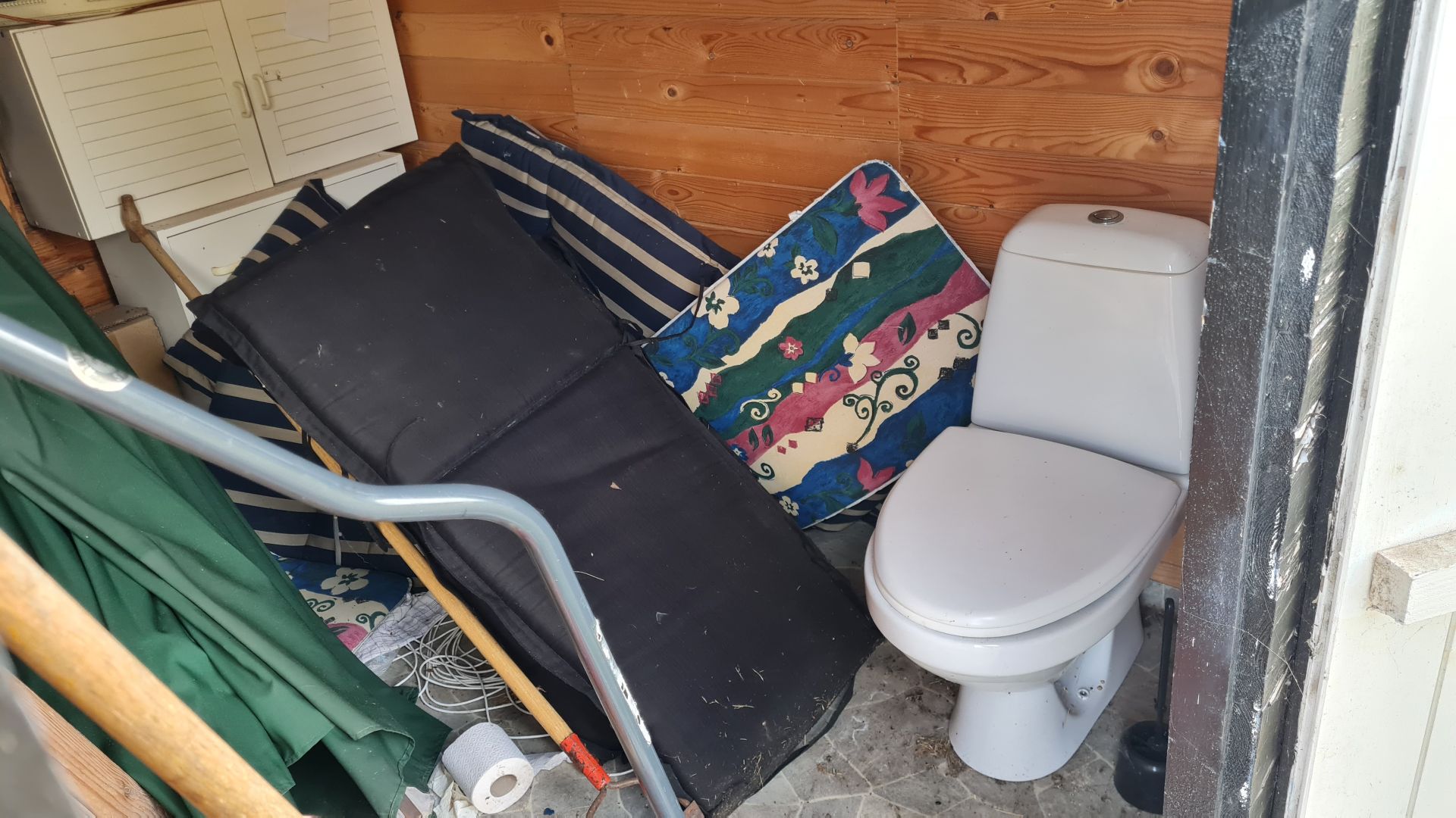 sætte en ny væg op på den anden led for at få plads til paddleboardene, men på sigt bliver det helt sikkert en god løsning. Ejendomsmægleren slog dog fast, at der stod i papirerne, at toilettet ikke virker - til den pris, som vi batalte,