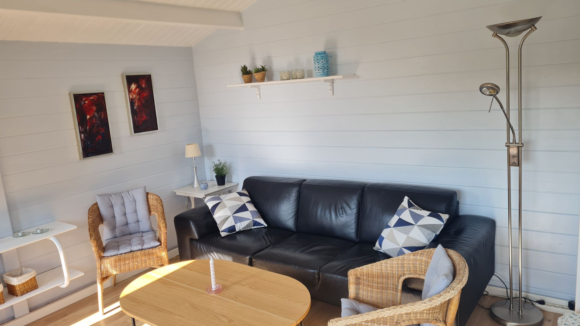 Med et nyt bord, lidt pyntepuder i sofaen og nogle loppefund i form af "nye" billeder, så synes vi selv, at vi har fået et rigtig hyggeligt sted at være.