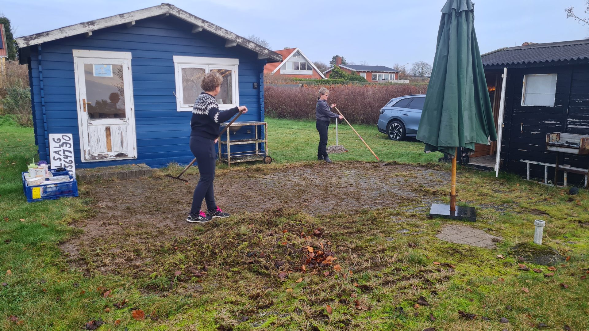 Lone og Susanne gik i gang med skovle og river og fjernede græs og mos i lange baner.