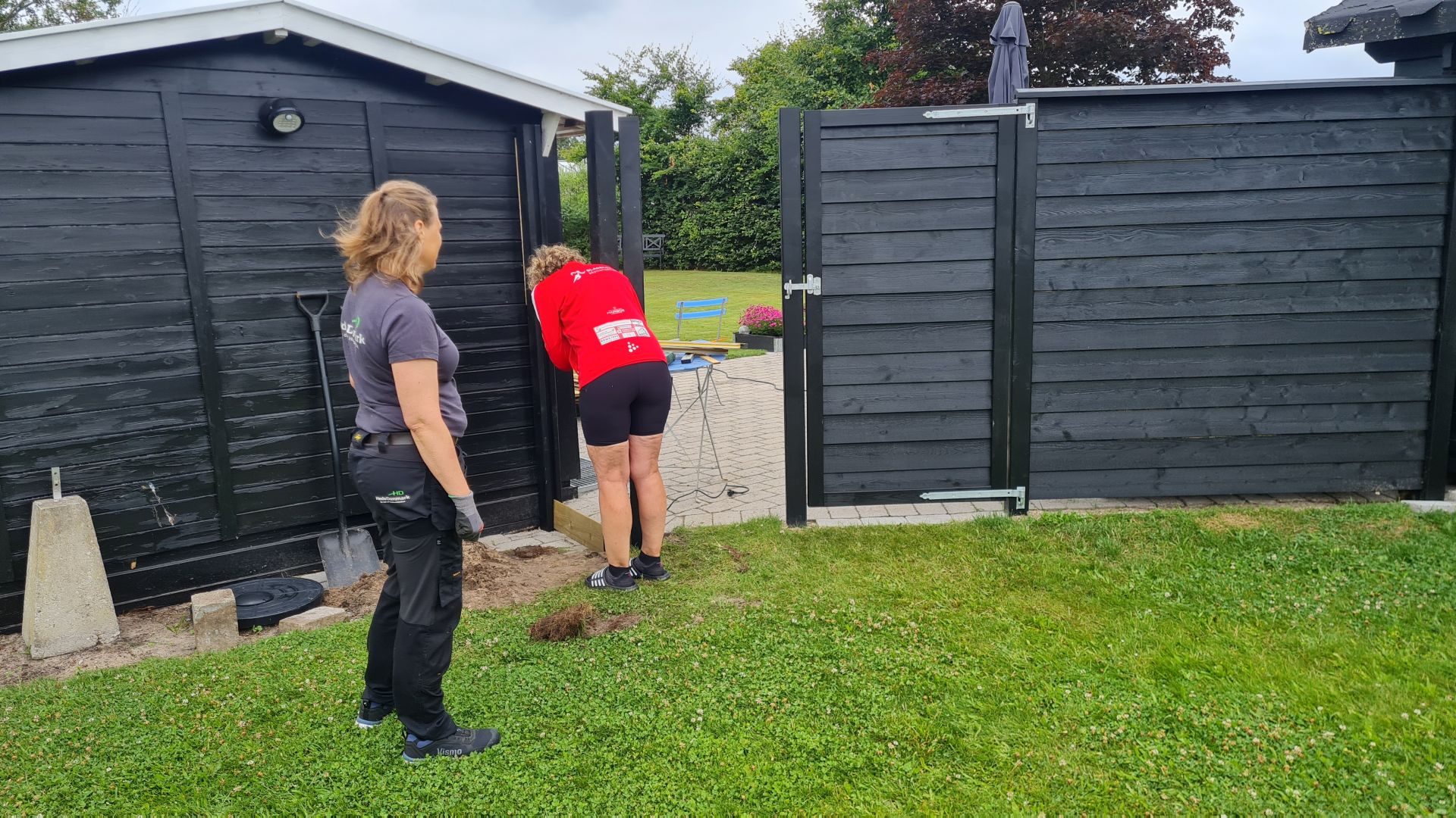 Så var det blevet tid til at sætte lågen op i hækken, og efter at have lavet hegnet mellem husene, var vi blevet helt ferme til det der med pælebor og stolpebeton.