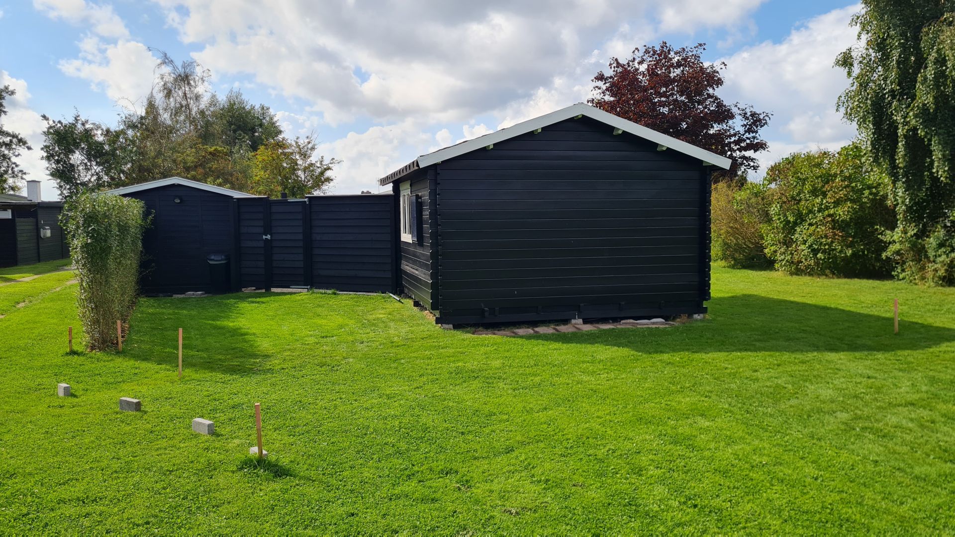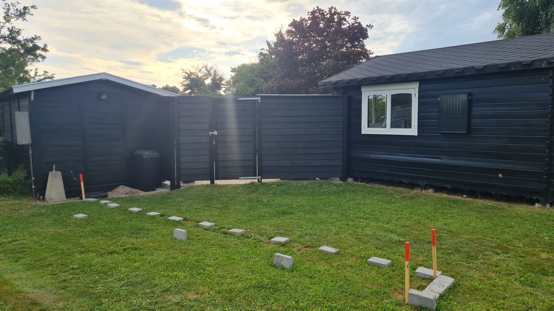 Vi besluttede os for et dobbelt klinkehegn, og selvfølgelig skulle det også males sort for at matche sommerhusene.