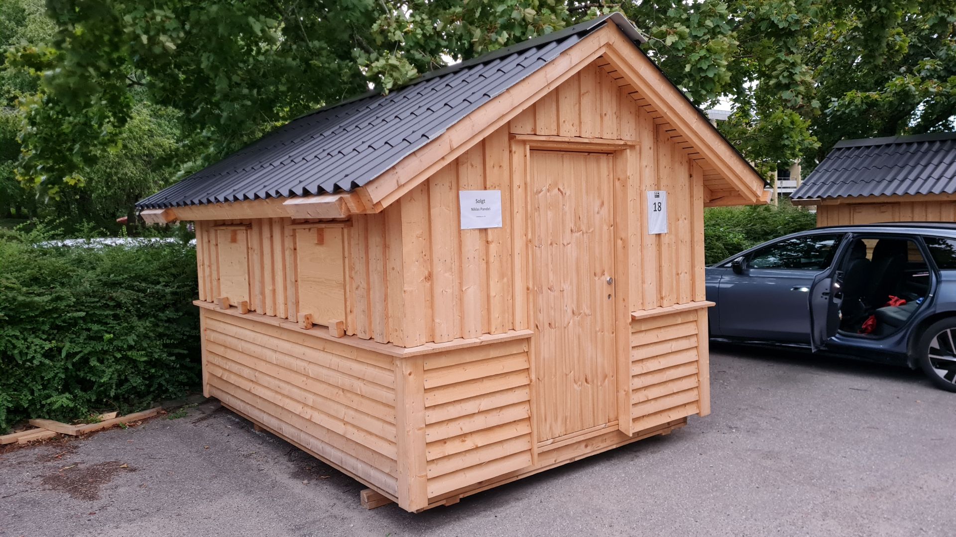 Vi blev derfor super glade, da vi fandt ud af, at man på ZBC i Slagelse kan købe de små bjælkehytter, som deres tømrerelever skal lave som opgave.