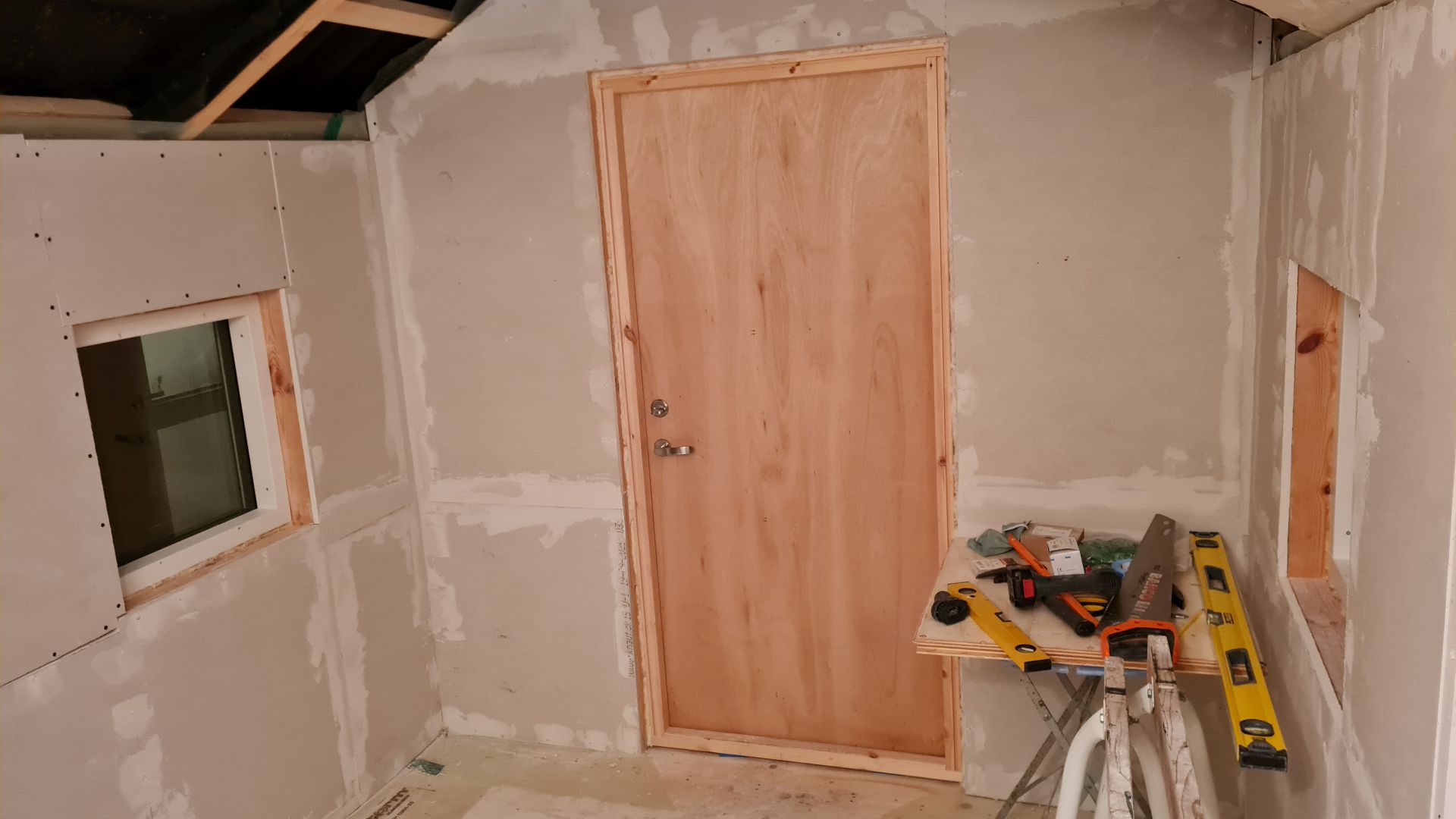 Februar 2026. Så er de sidste giplader sat op. Der skal lige spartles nogle gange, sættes væv op og males, så skal det nok blive et rigtig fint soveværelse.