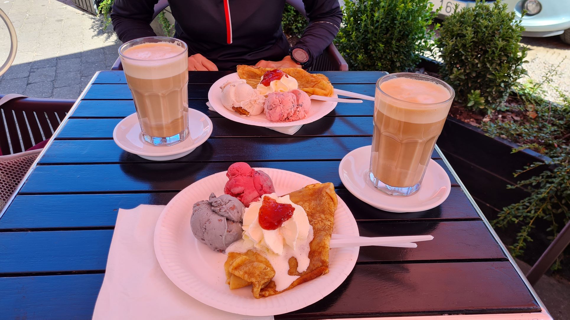 en enkelt caffe latte og pandekager med is - uden mad og drikke, duer heltene ikke!
