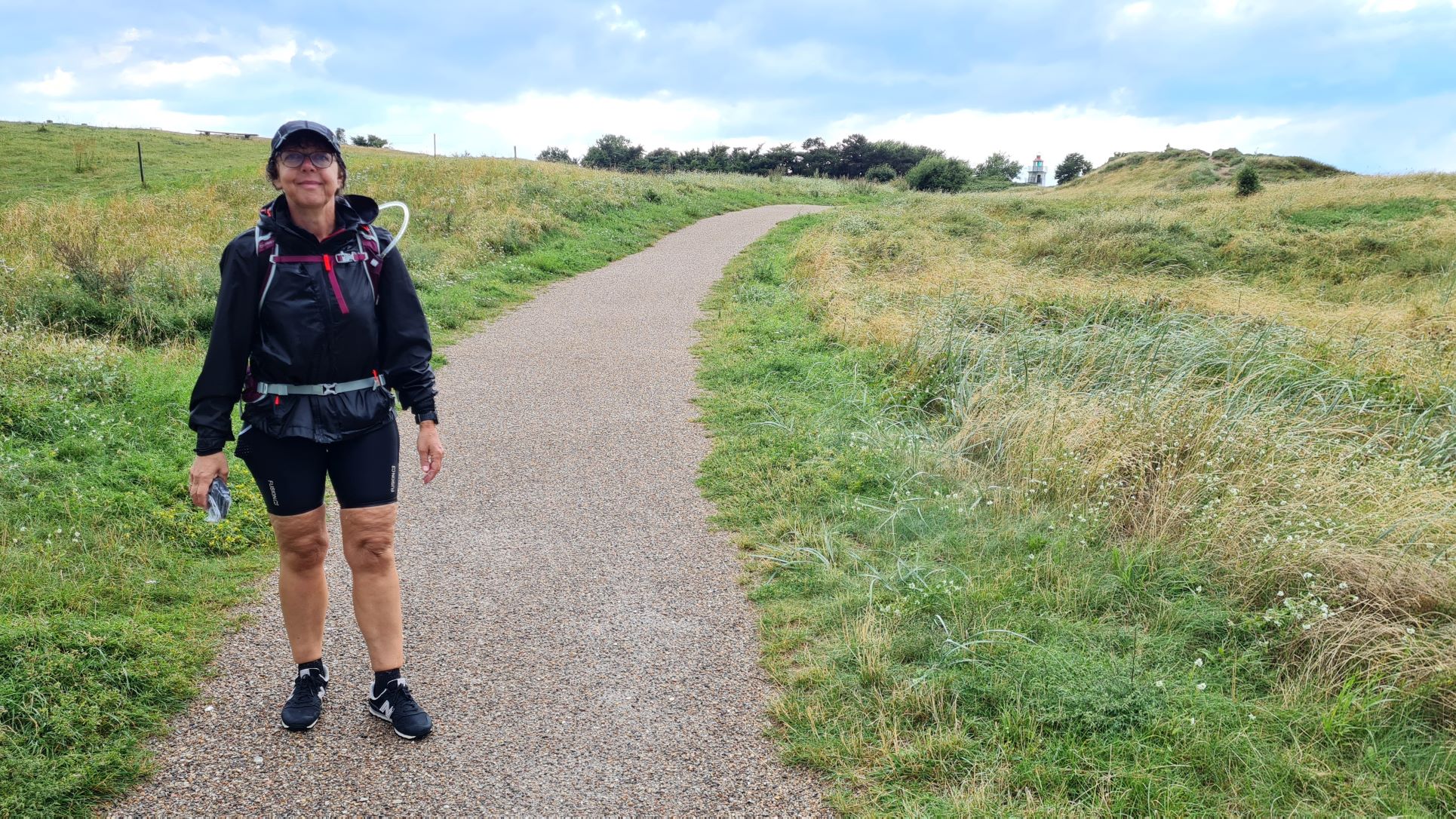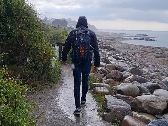 med de første 6 vandredage i tørvejr, og nu var vi næsten tilbage ved bilen og kunne skimte Spodsbjerg Fyr forude.