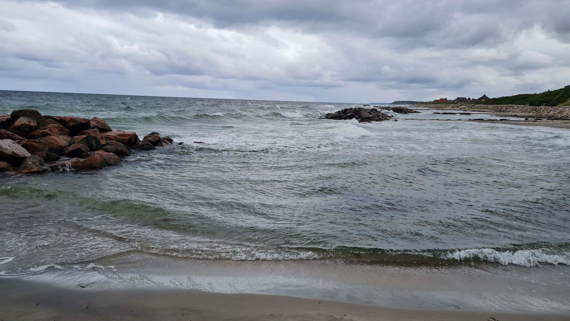 | Det ser jo fantastisk flot ud, men man kan godt fornemme, at det meste af stranden lå under vand.