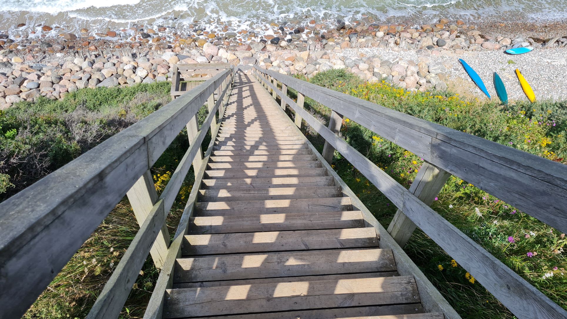 | På et tidspunkt måtte vi give op og tage den tunge vej op ad en trappe igen og væk fra stranden.