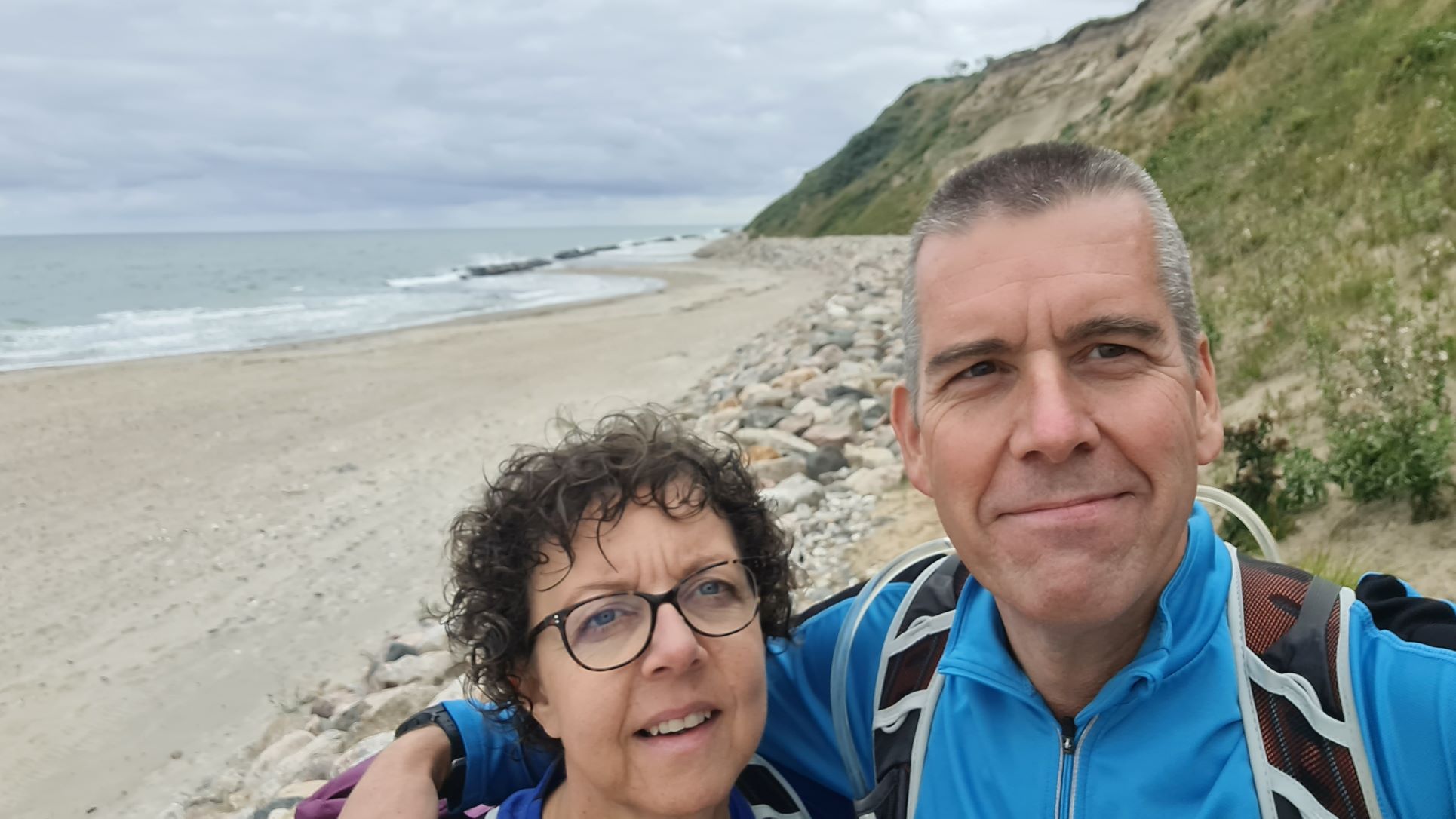 | Det var blevet rimelig varmt, så Niklas fik lige tid til en dukkert i havet, mens Lone sad på stranden og