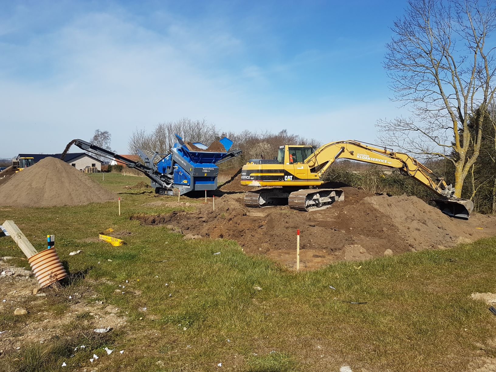 Da vores grund ligger højt i forhold til næste udstykning mod Nord, skulle der graves en masse (14 lastbiler!) jord væk og fyldes op med grus til en såkaldt sandpude, som huset skulle funderes på.
