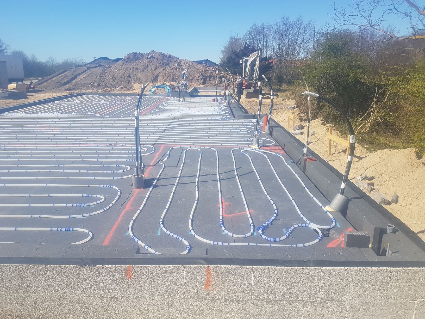Den 17. april var de færdige med isolering af gulv og i løbet af blot en enkelt dag, fik de den 18. april lagt slanger ud til gulvvarme i alle rum.