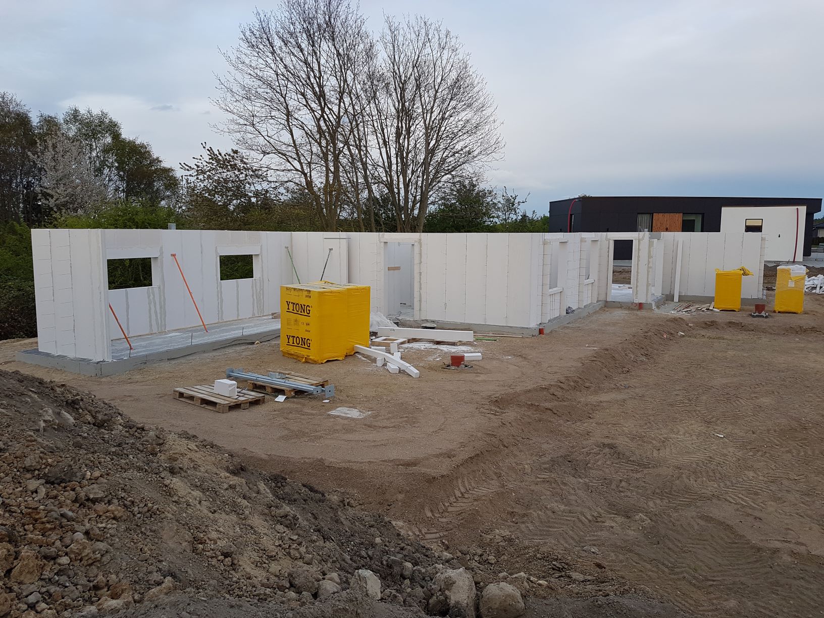 Blot 3 dage efter at gulvet blev støbt, begyndte de at sætte væggene op.