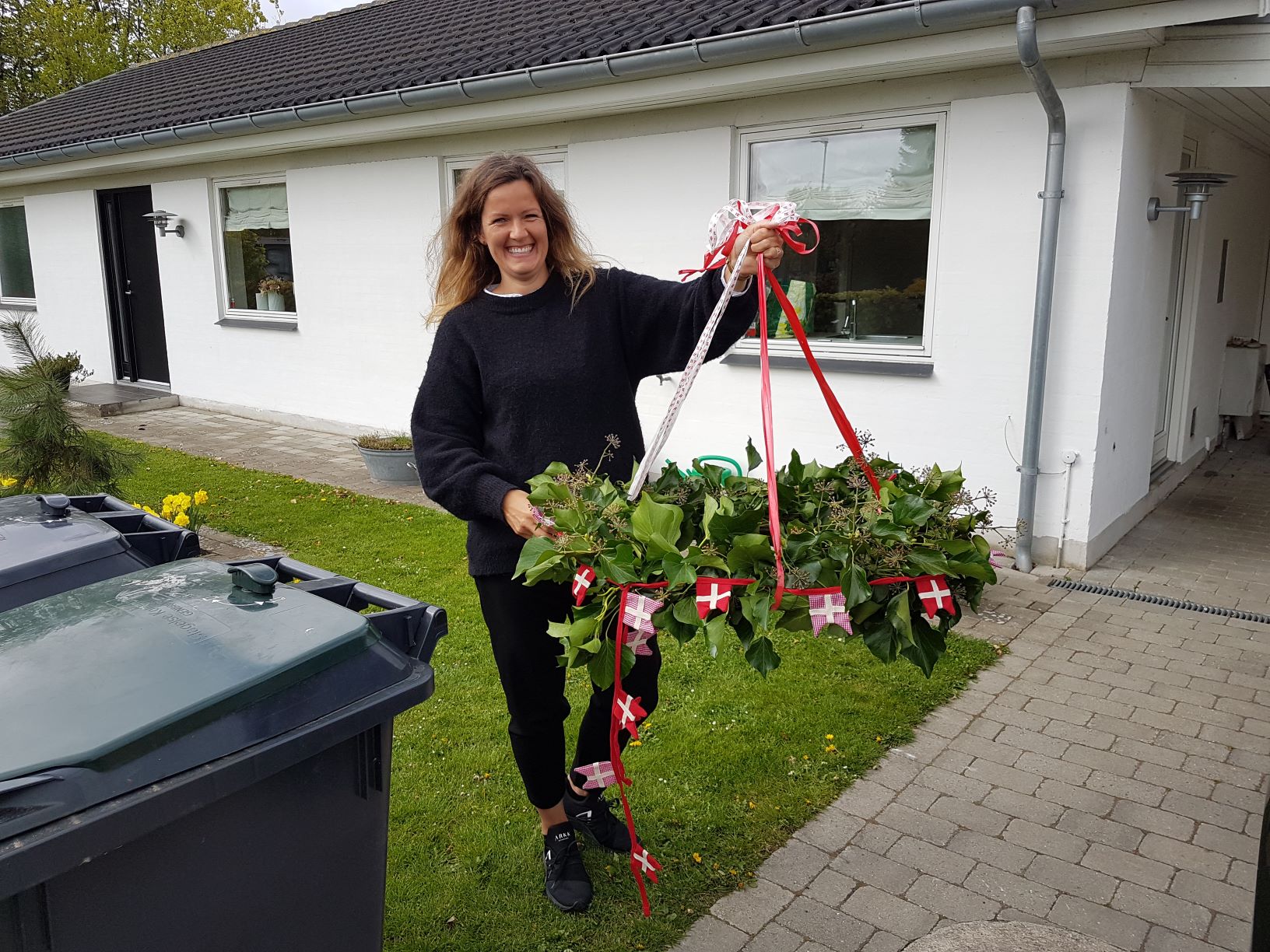 | Det så nu flot ud med den fine krans, som vajede over taget.
