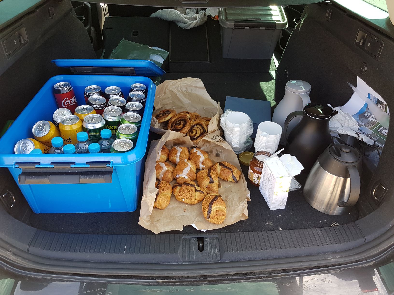øl, pølser og kartoffelsalat for alle håndværkerne og vores familie og venner.