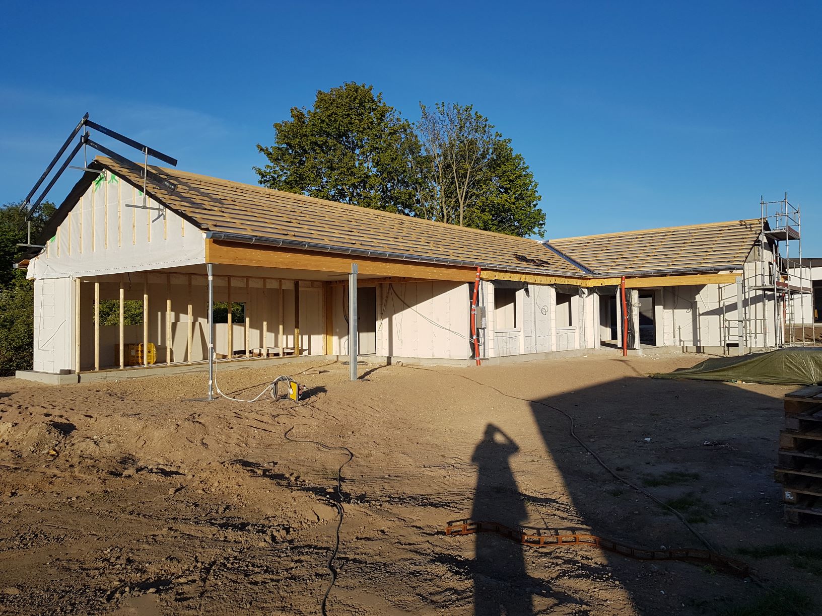 Vi var utroligt heldige med vejret i hele byggefasen. I dag var vist en af de meget få dage, hvor det regnede.
