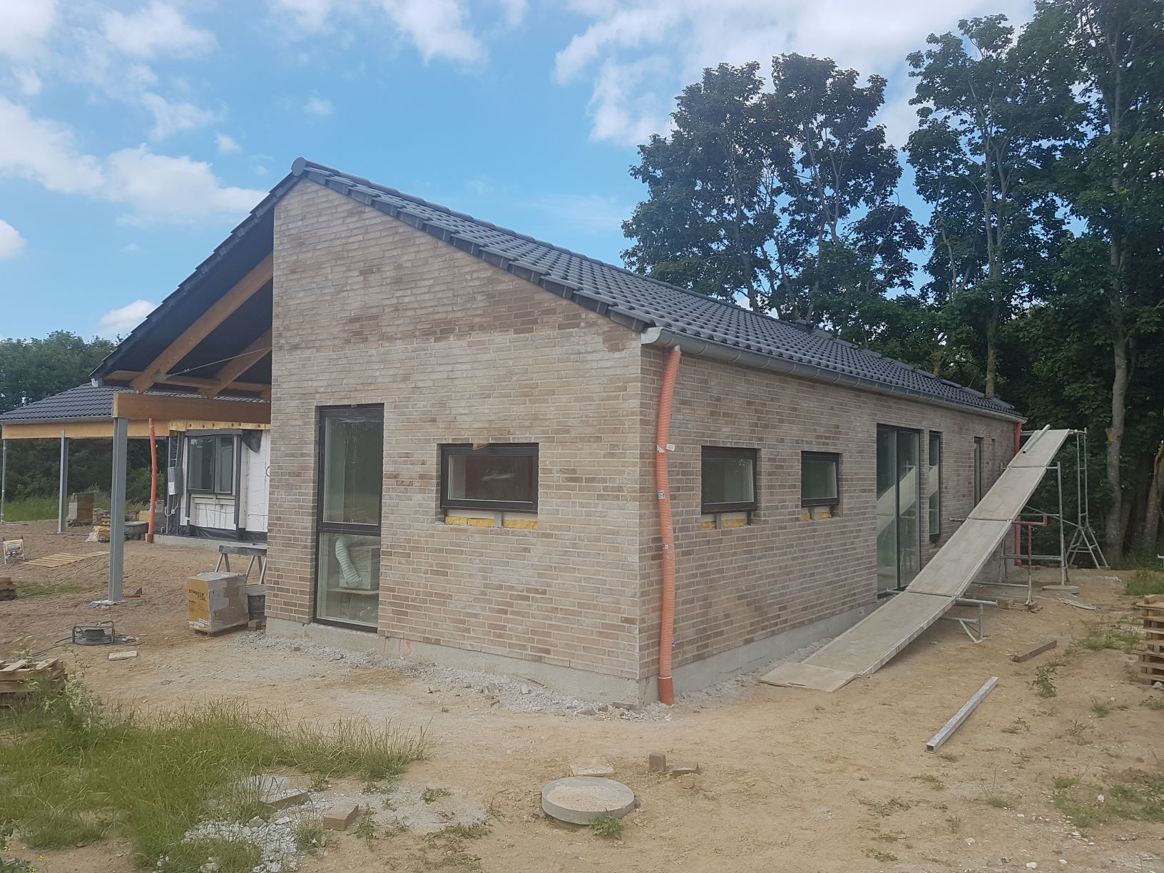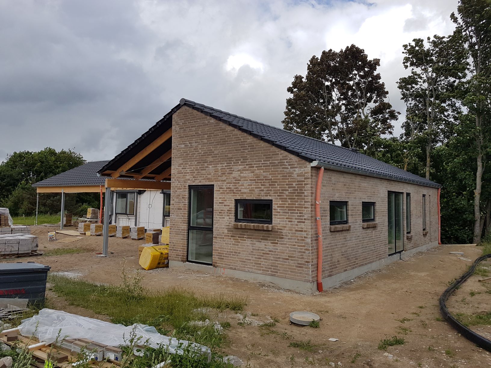 Der er også monteret nedløbsrør, så nu ser huset næsten færdigt ud udefra.